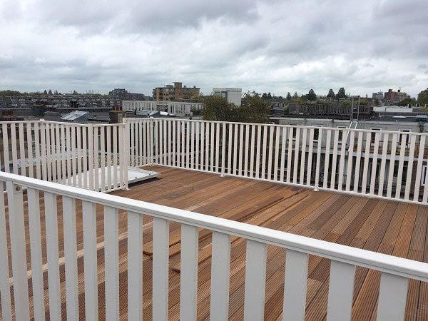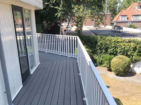 Een lamellen hekwerk staat prachtig om uw balkon of dakterras. Het hekwerk heeft een stijlvolle uitstraling en door het gebruik van de brede spijlen heeft het hekwerk veel weg van een houten hekwerk.