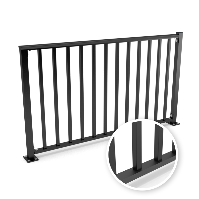 De montage van dit lamellenhekwerk is eenvoudig en efficiƫnt. De balusters met voet-muurplaat zorgen voor een stevige en stabiele bevestiging, en de vierkante spijlen kunnen gemakkelijk worden gemonteerd.