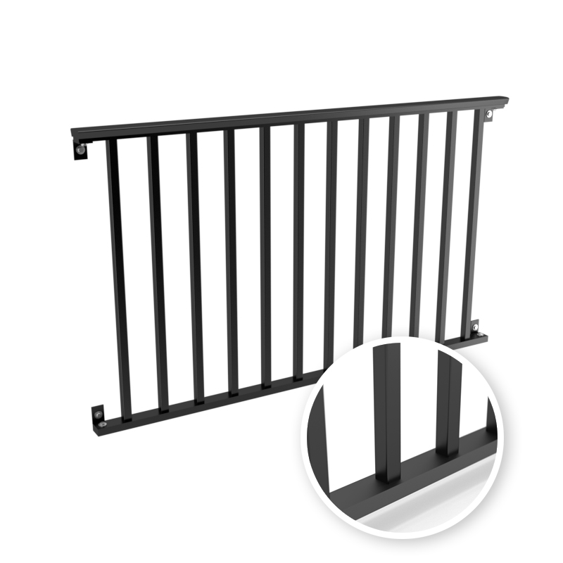 Het Franse balkonhek is voorzien van een bevestigingslip dat geschikt is voor in de dag en op de dag montage. |